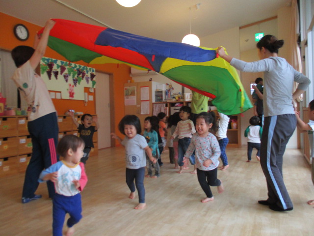 パラバルーンを大人が持ってふわふわ~と動かしてみました。