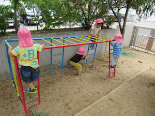 しっぽ取りのあとはお砂場で遊びました。ごはんを作っておままごとをしたり、ダンゴムシを探したり、雲梯をしたり好きな遊びを楽しみました。大きなダンゴムシがたくさん出てきて大盛り上がりでした。